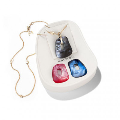 Box Ciondoli grandi, catenina in oro rosa e tre trapezi colorati intercambiabili, di Mattioli della collezione Puzzle