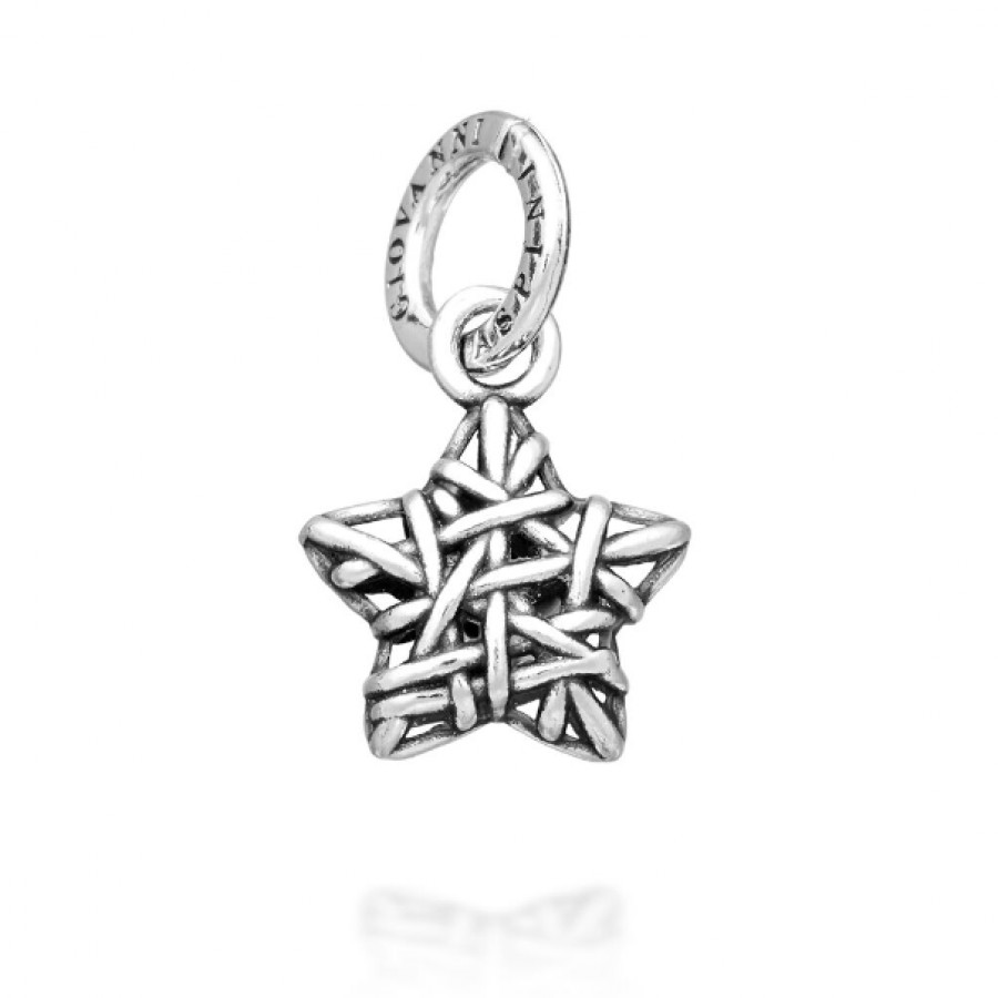 Questo charm in argento brunito è realizzato completamente a mano tramite la tecnica della fusione a cera persa. Una stella dalla forma morbida e tridimensionale, vuota all'interno e dalla superficie caratterizzata dal tema intrecci.