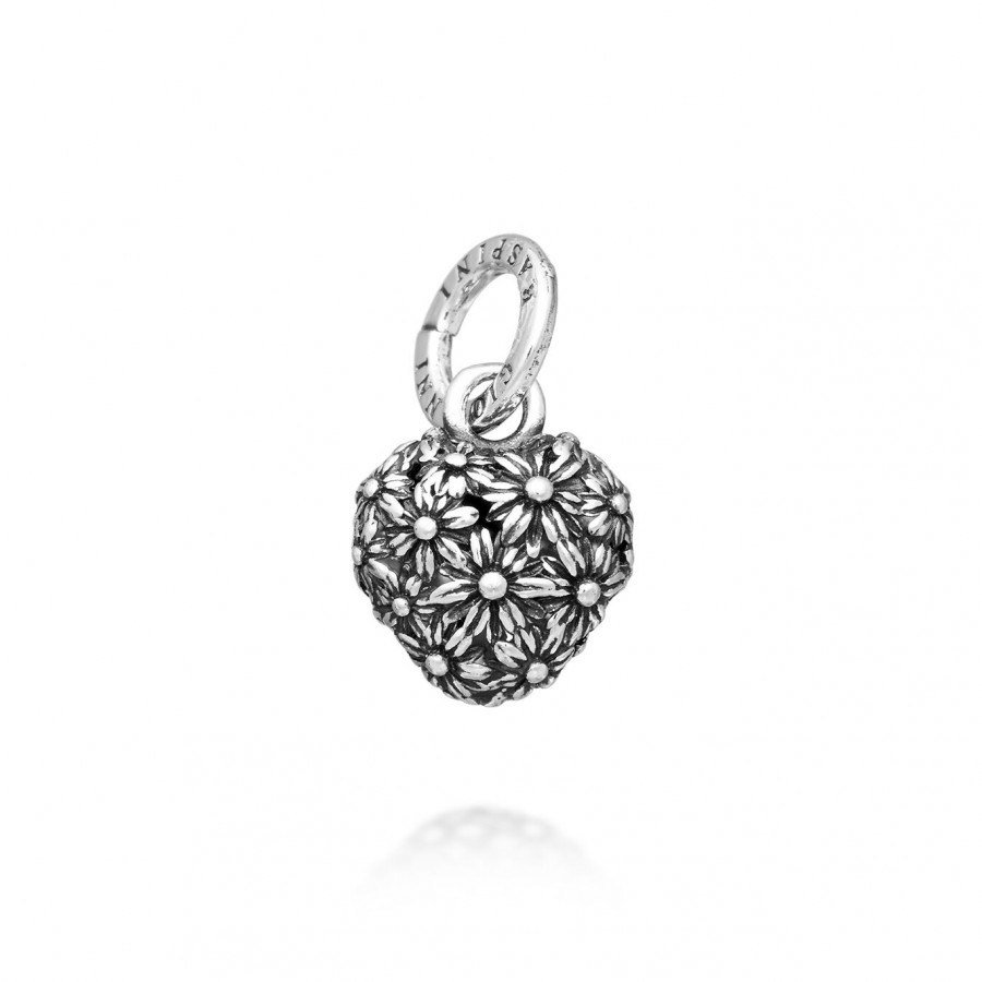 Il charm Cuore Margherite in argento brunito si ispira alla forma di un morbido cuore, vuoto all'interno e ricoperto da tante graziose margherite. Realizzato completamente a mano in Italia, può essere usato per creare collane, bracciali o orecchini da sogno.