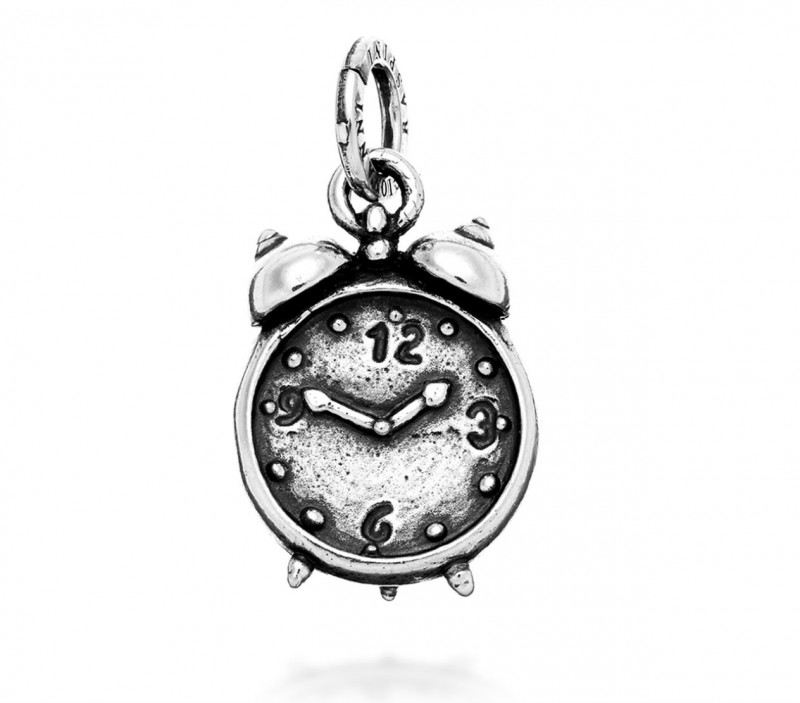 Un piccolo ciondolo in argento 925 con una sveglia ideale per da inserire sul tuo braccialetto.