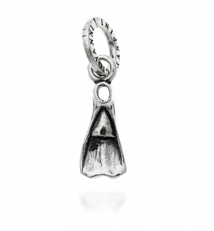 Un piccolo charm in argento 925 con una pinna da sub ideale per chi ama le immersioni.