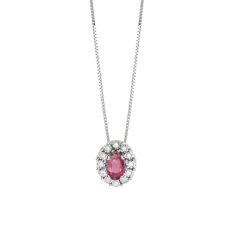 Collierino Bliss Regal in Oro Bianco, diamanti e rubino 0,35 carati