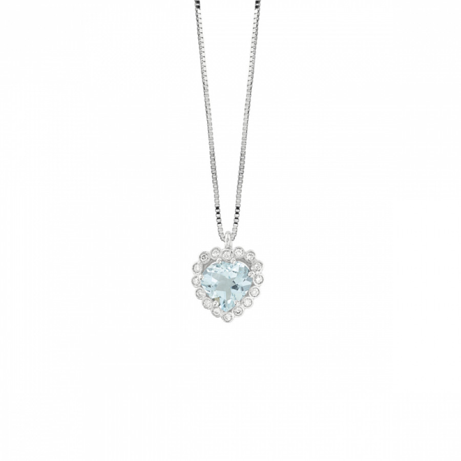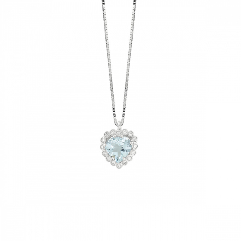 Collana Stephanie in oro bianco con diamanti e acquamarina