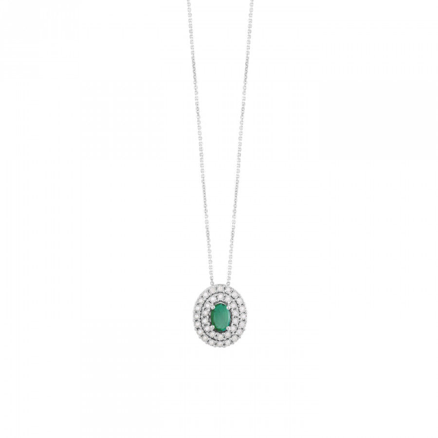 Collana Bliss in oro bianco con diamanti e smeraldo della collezione Regal