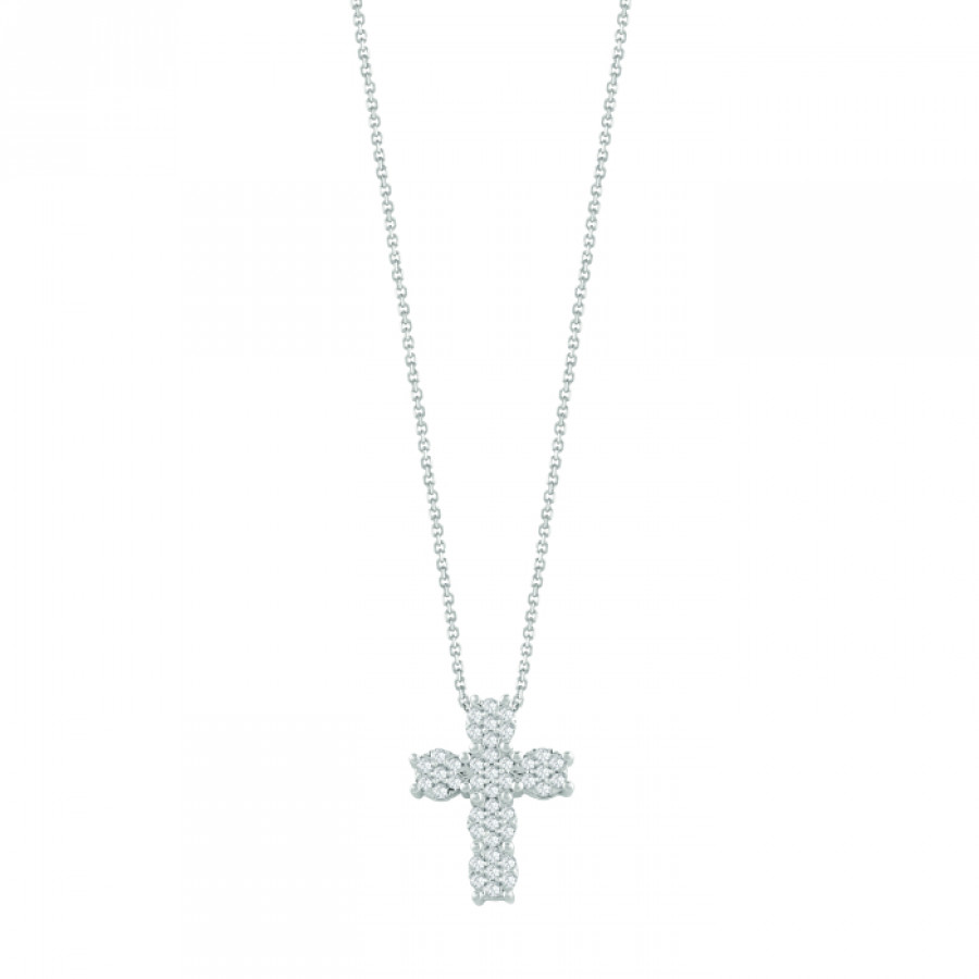 Collana Bliss Caresse con croce in oro bianco e diamanti 0,21 carati Gh taglio rotondo