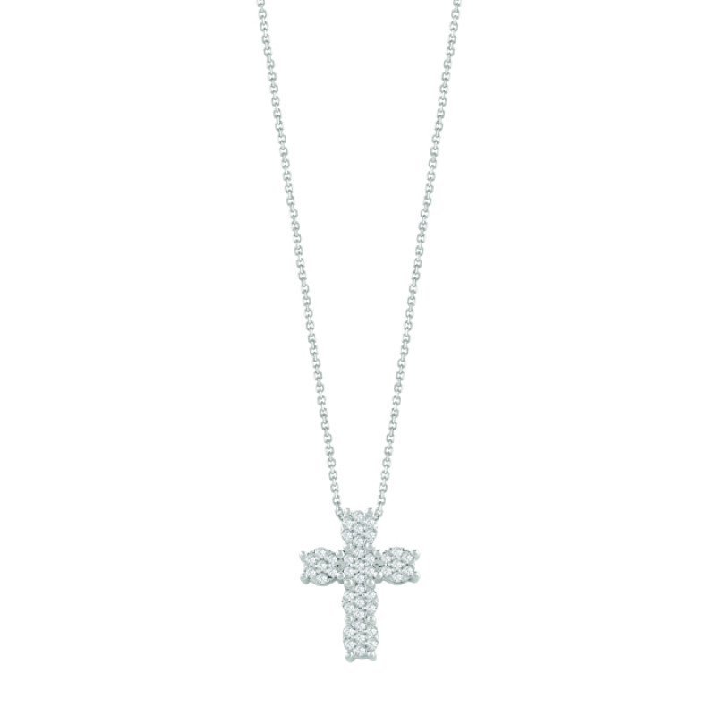 Collana Bliss Caresse con croce in oro bianco e diamanti 0,3 carati