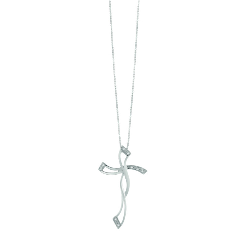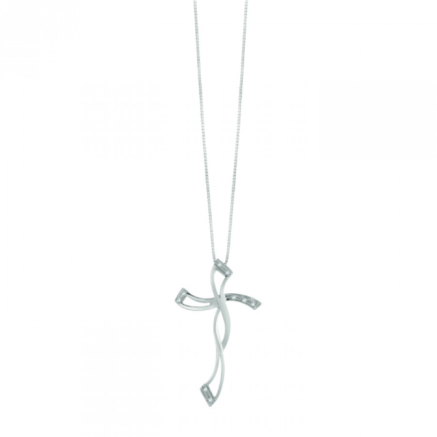 Collana in oro bianco 9 kt con diamanti 0,003 ct. GH ciondolo Croce