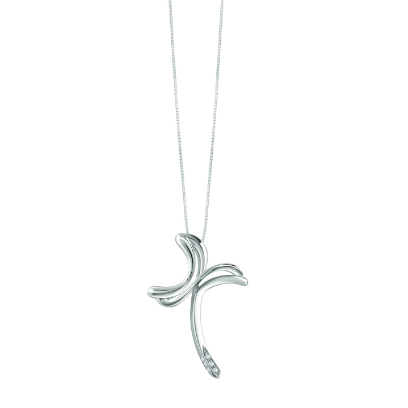 Collana Croce oro bianco e diamanti