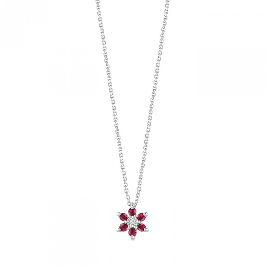 Collana Bliss oro bianco, diamanti e rubini della collezione Elisir.