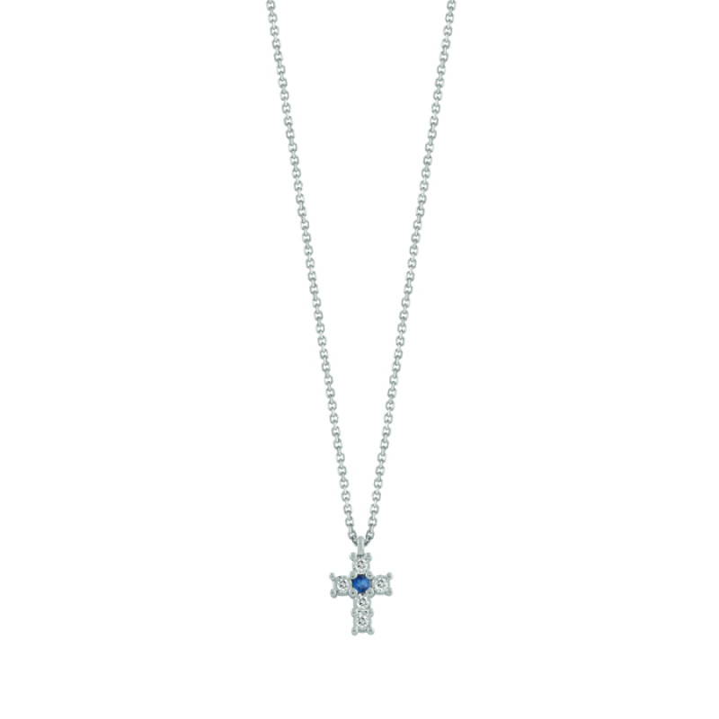 Collana Bliss in oro bianco, zaffiro e diamanti, della collezione Jasmine.