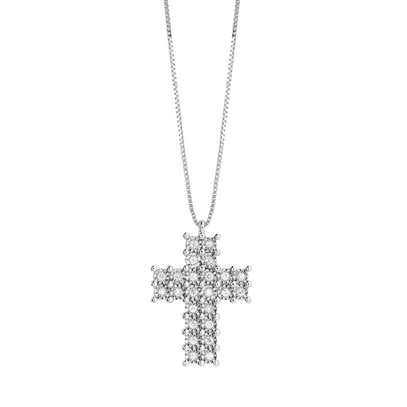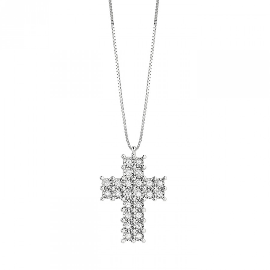Collana Bliss in oro bianco con charm croce della collezione Rugiada.