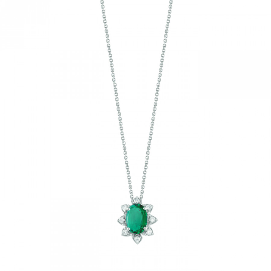 Collana Bliss in oro bianco, diamanti e smeraldo della collezione Vittoria