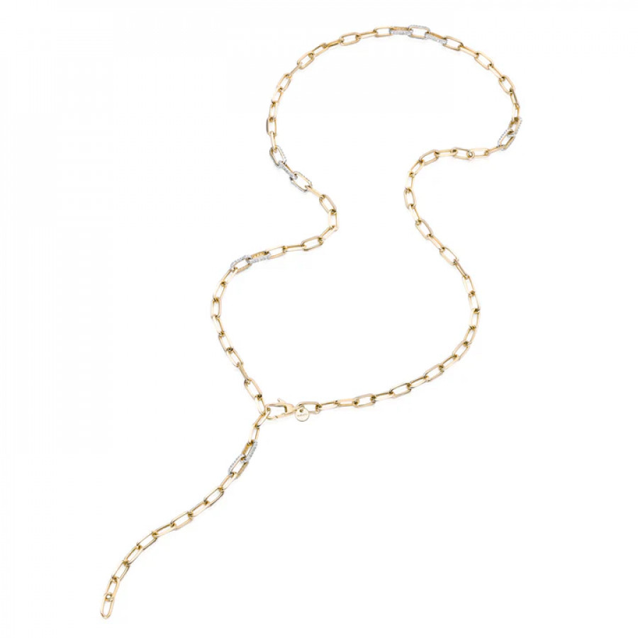 Un nuovo look dallo stile city sport-chic per chi desidera un gioiello di lussoda indossare ogni giorno. La collana Long Chain Fine Jewelry offre diverse modalità di utilizzo: lunga e morbida, annodata a cravatta o avvolta tre volte al polso come un bracciale.Esprimi il tuo stile, rendilo unico e immediatamente riconoscibile.