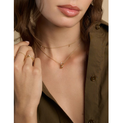 Un cerchio perfetto custodisce un diamante solitario al suo centro. All’interno scorrono tre piccole fedine, una tonda, una catena scintillante con un effetto diamantato e una fedina squadrata, simboli di equilibrio, movimento e luce. La collana in oro giallo 18 carati Circle Solitaire Y celebra l’armonia delle forme pure in una chiave minimal-chic e contemporanea, definendo ogni look con raffinatezza.