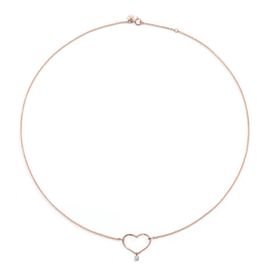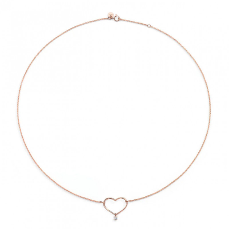 La collana in oro rosa che unisce un design moderno e dal carattere forte al fascino romantico del gioiello a forma di cuore.