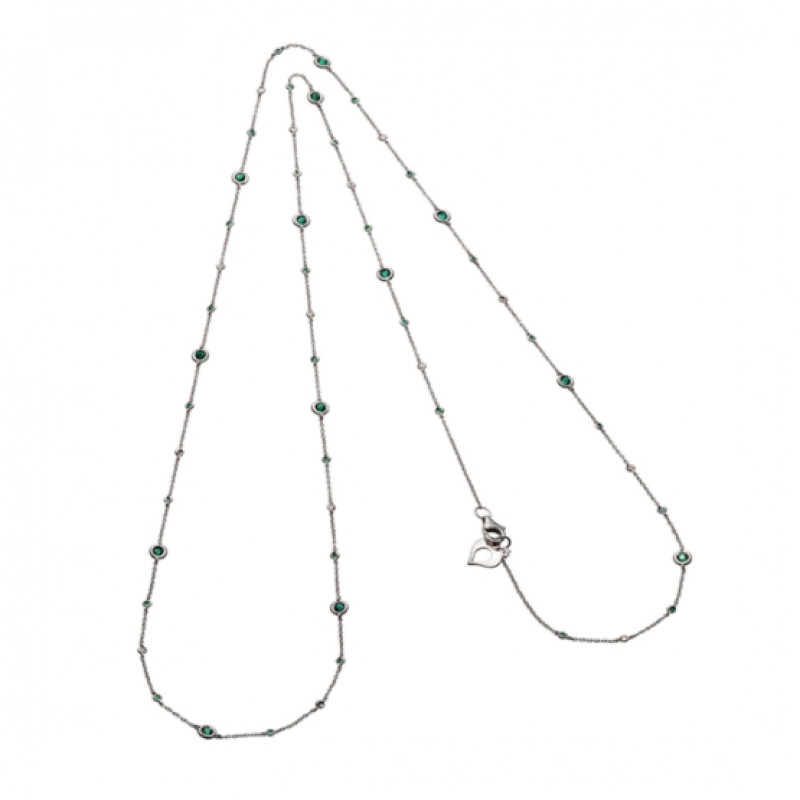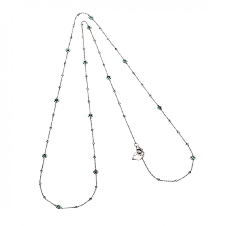 Collana Capri oro bianco, diamanti e smeraldi