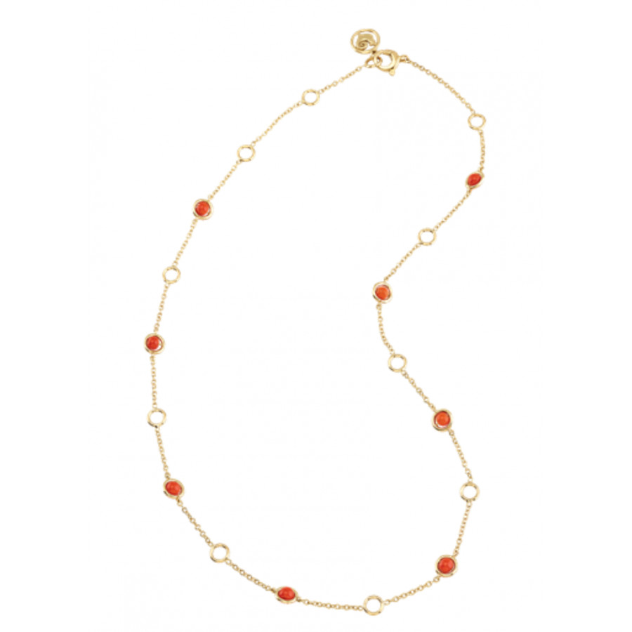 Catena 45 cm maglie ovali in oro giallo 18Kt e coralli rossi