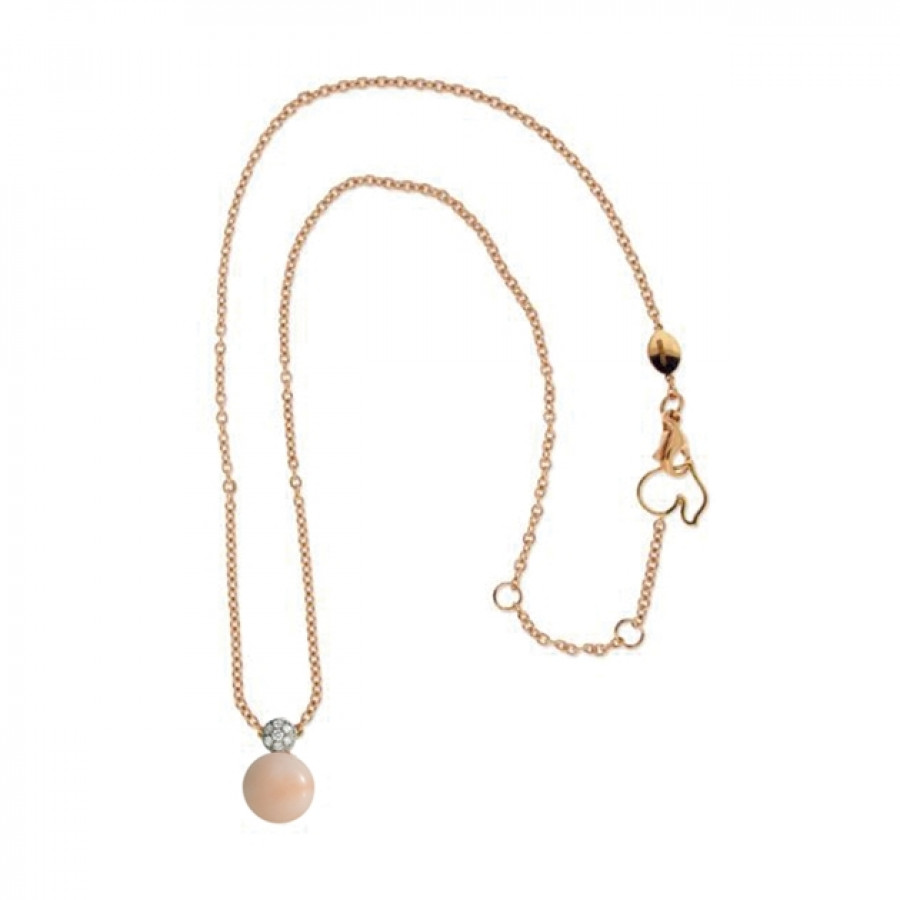 Collana Chantecler in oro rosa, diamanti e corallo rosa, appartenente alla collezione Bon Bon.