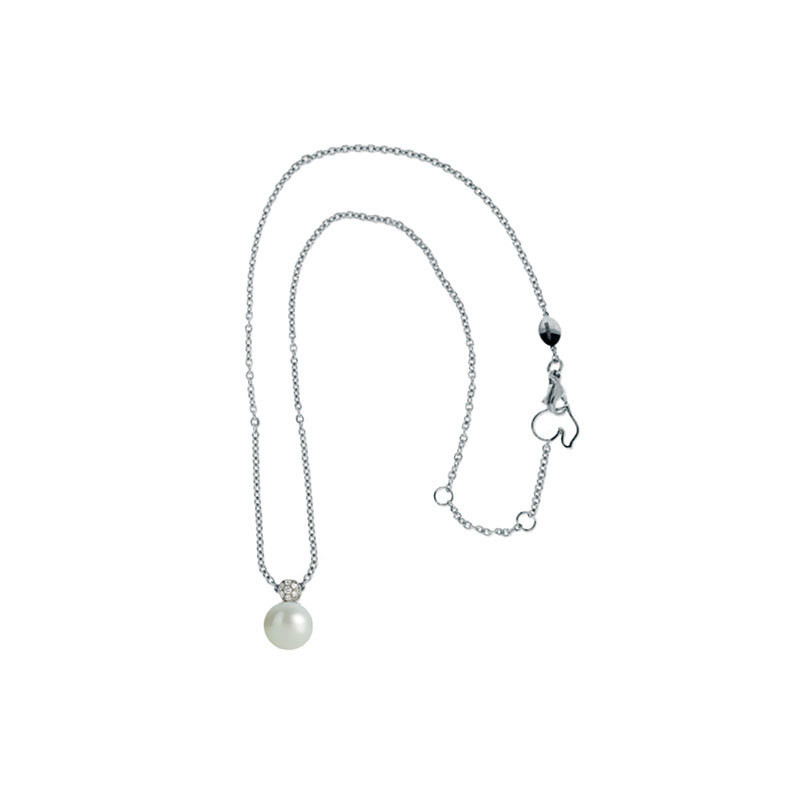 Collana in oro bianco, diamanti e perla fwp