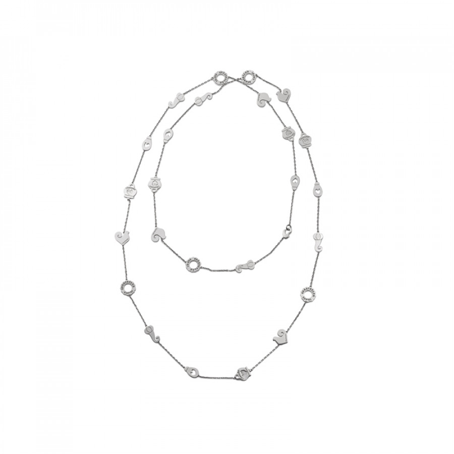 Collana lunga con simboli in argento, appartenente alla collezione Et Voilà di Chantecler.