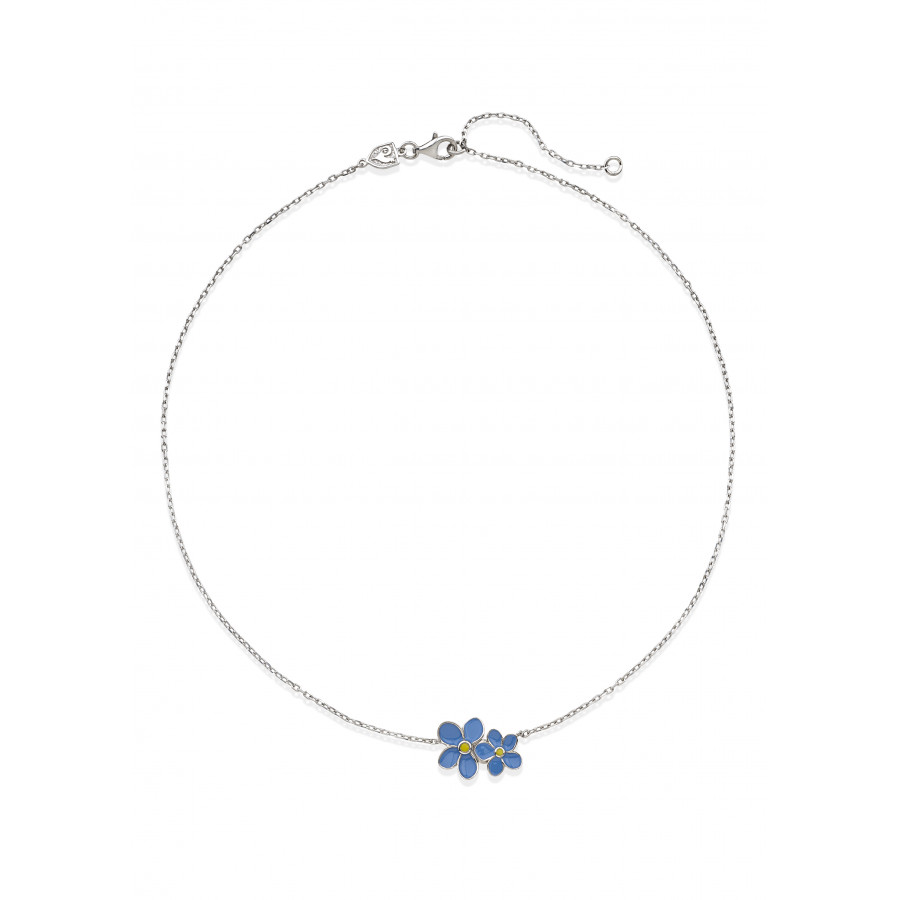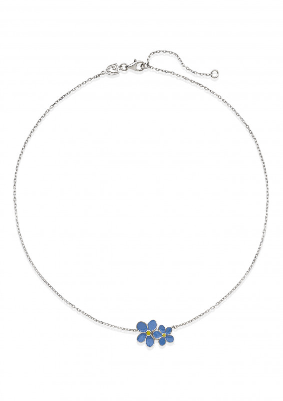 Collana fiore non ti scordar di me in argento, smalto turchese e giallo, appartenente alla collezione Et Voilà di Chantecler.