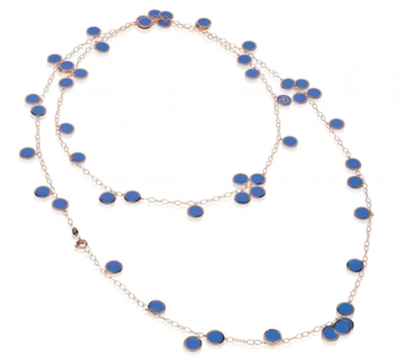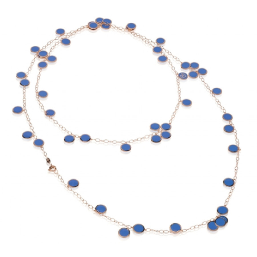 Collana Chantecler in oro rosa e smalto rosa azzurra