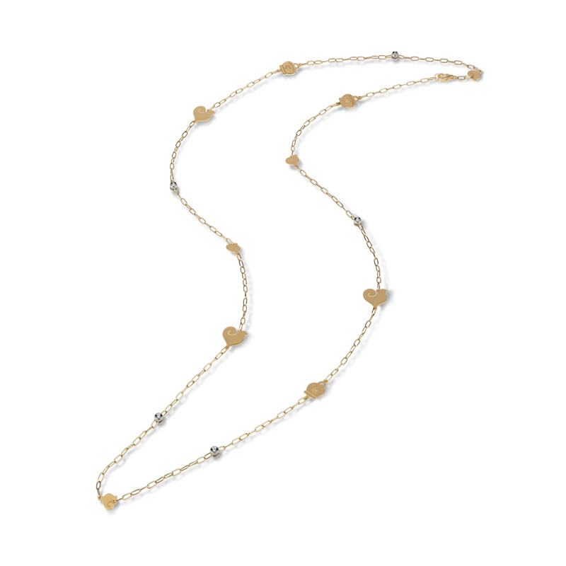 Collana Chantecler cm 80 con simboli gallo e campana, in oro giallo e diamanti, appartenente alla collezione Anima.