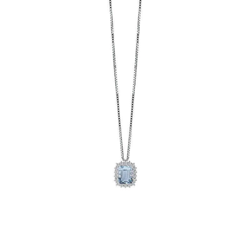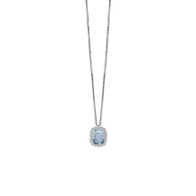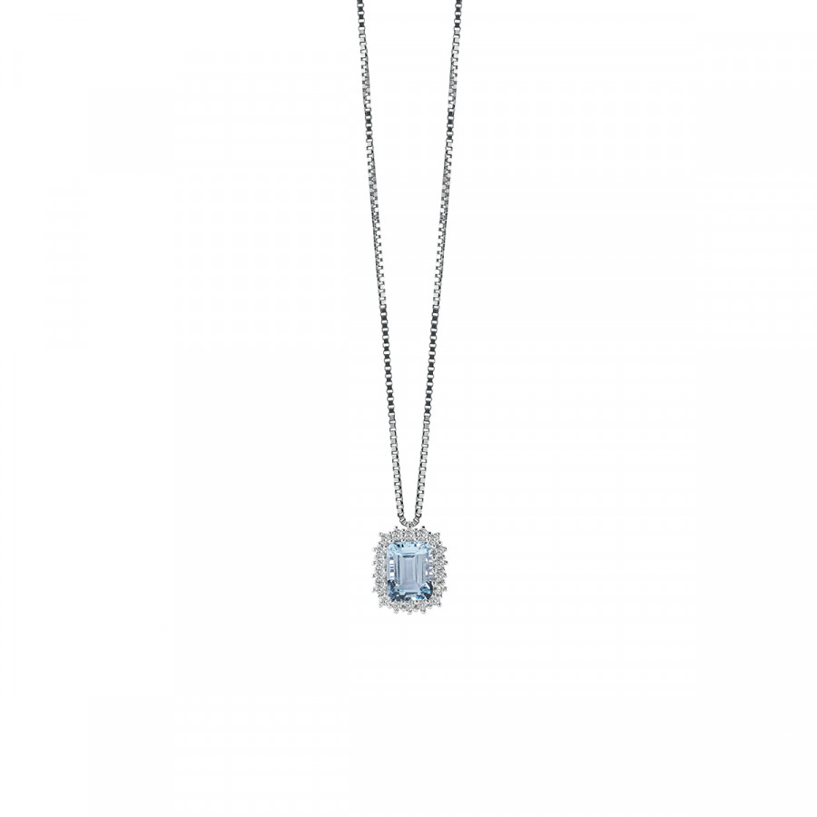 Collana in oro bianco con diamanti e acquamarina, della collezione Capri di Salvini.