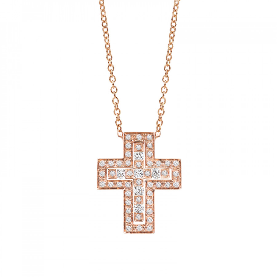 Collana croce in oro rosa e diamanti