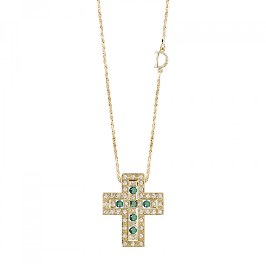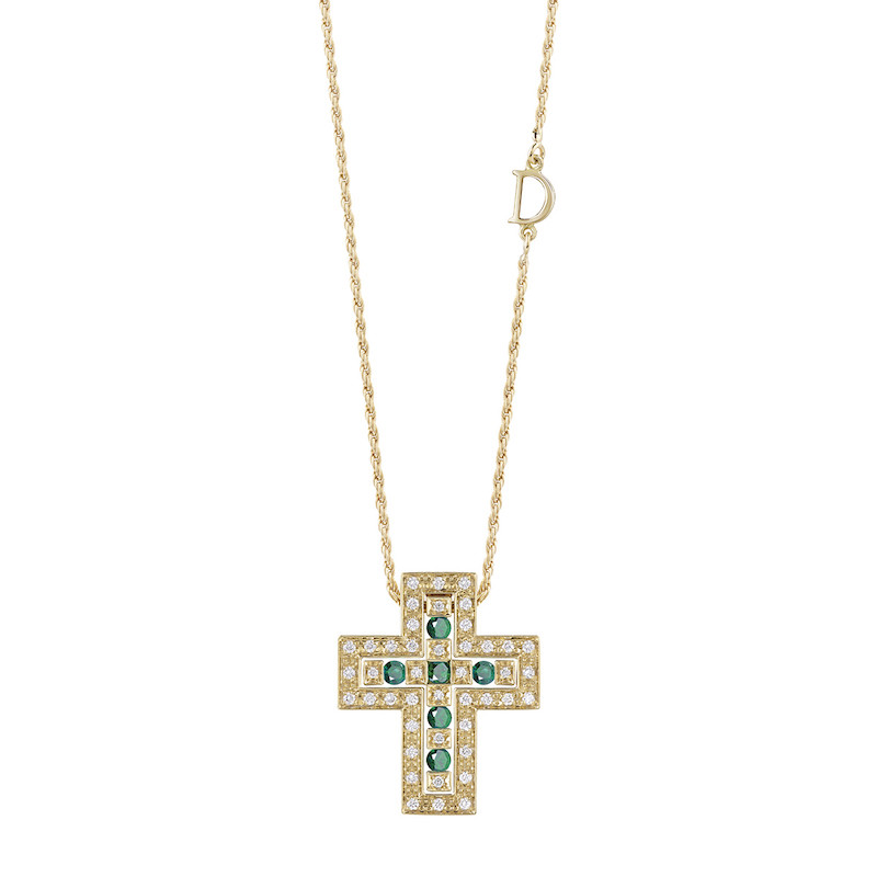 Collana Croce Belle Epoque oro rosa diamanti smeraldi