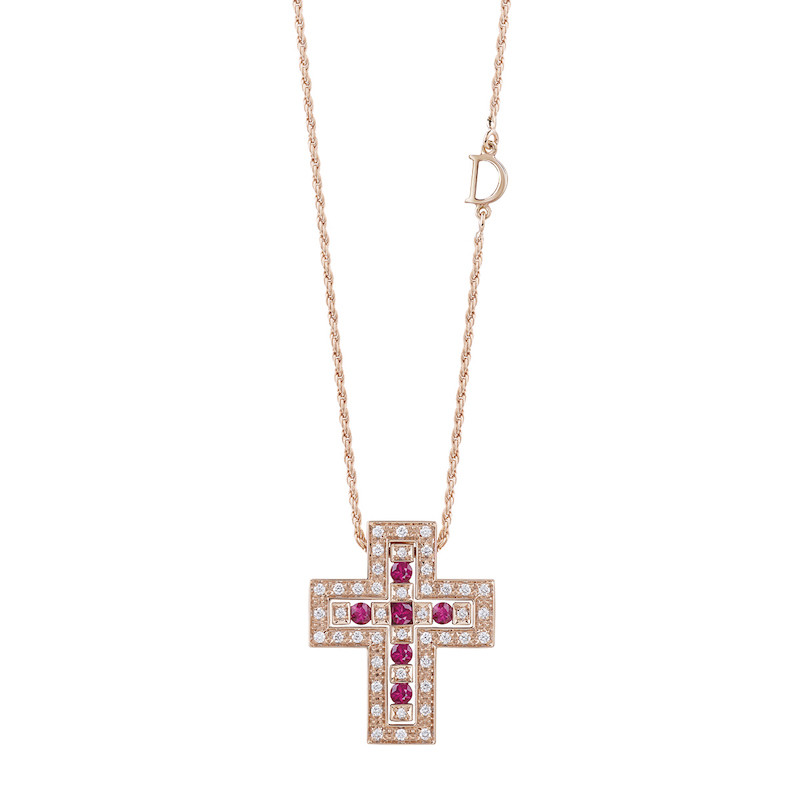 Collana Croce Belle Epoque oro rosa diamanti rubini