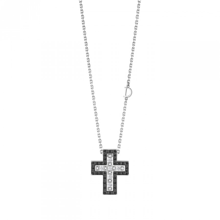 Collana Croce Belle Epoque oro bianco e diamanti bianchi e black