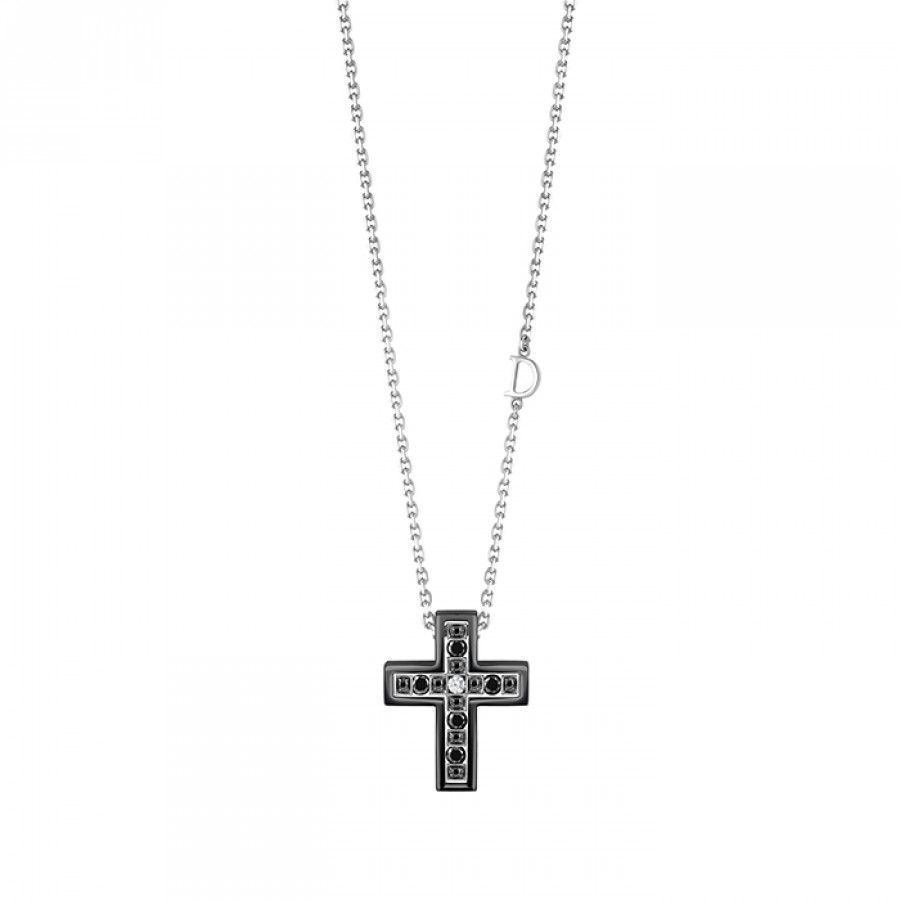 Collana Croce Belle Epoque oro brunito, diamanti e diamanti black