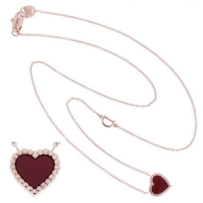 Collana Damiani con ciondolo a forma di Cuore, in oro rosa 18 kt, corniola e diamanti, della collezione Belle Epoque.