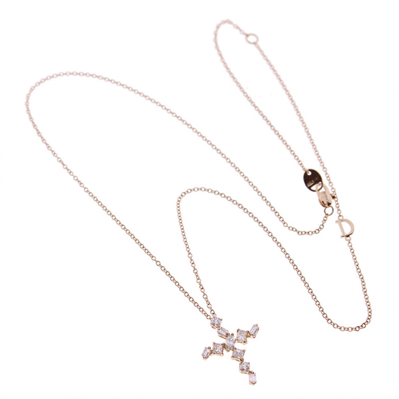 Collana Damiani Fantasy Croce in oro rosa con diamanti ct. 0.83 GH VS