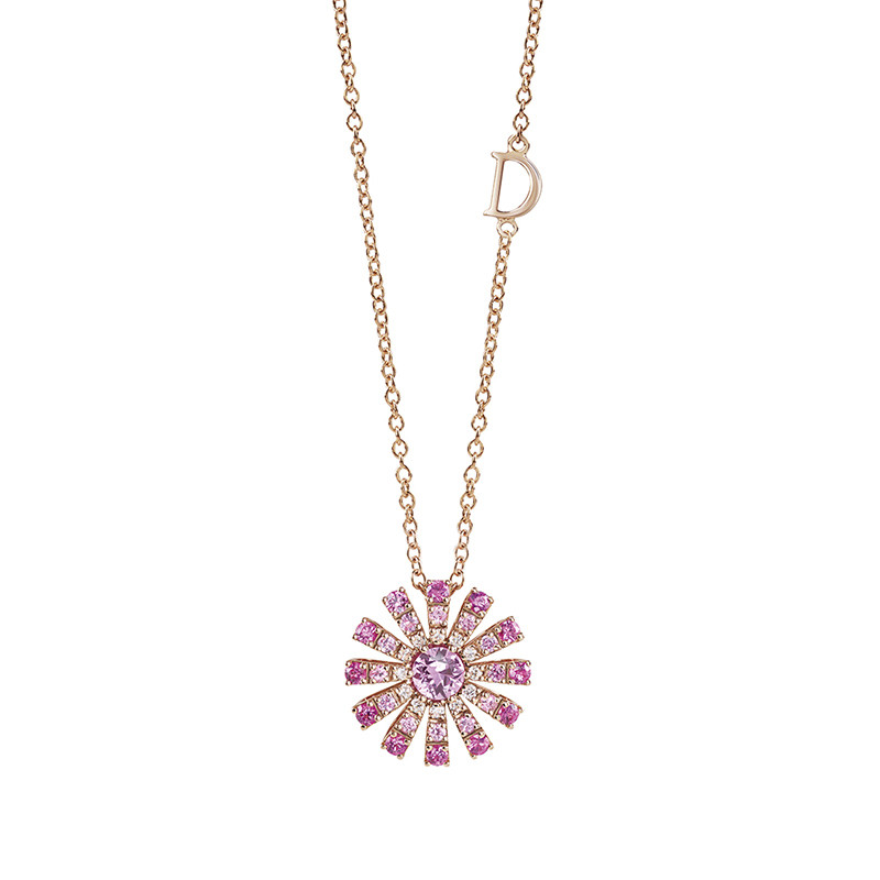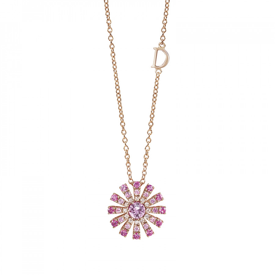 Collana Margherita in oro rosa diamanti e zaffiri rosa