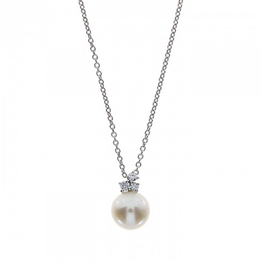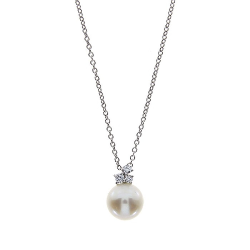 Collana in oro bianco con diamanti e perla