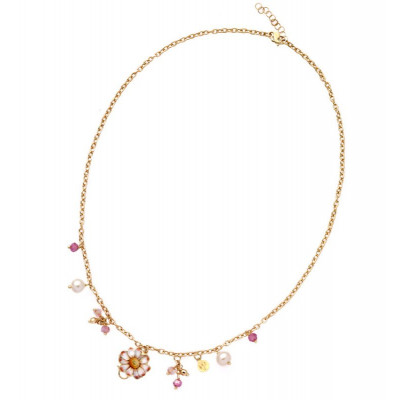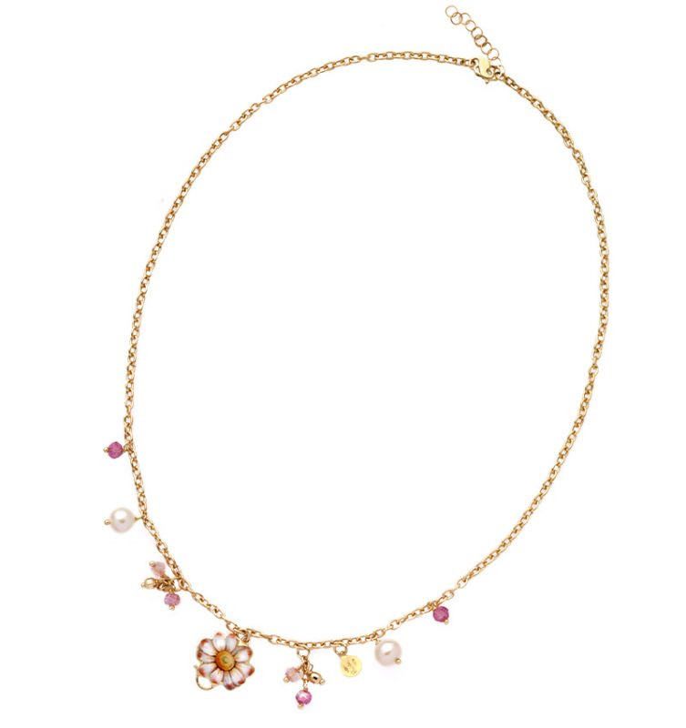 Collana Gabriella Rivalta in oro miniato Margherite Fiorellini Grandi Rosa, collezione Fiori
