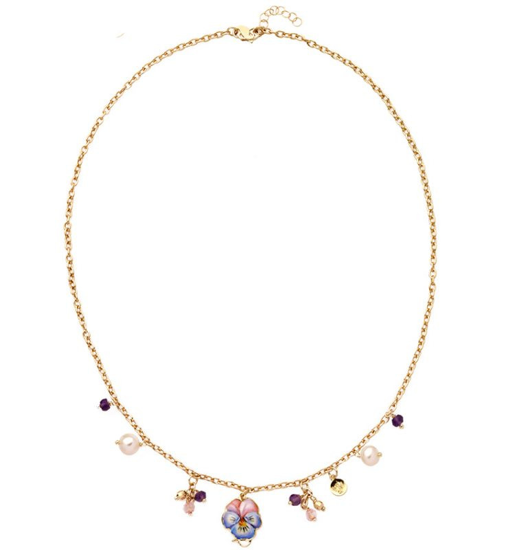 Collana Gabriella Rivalta in oro miniato Pansè Fiorellini Grandi Viola, collezione Fiori