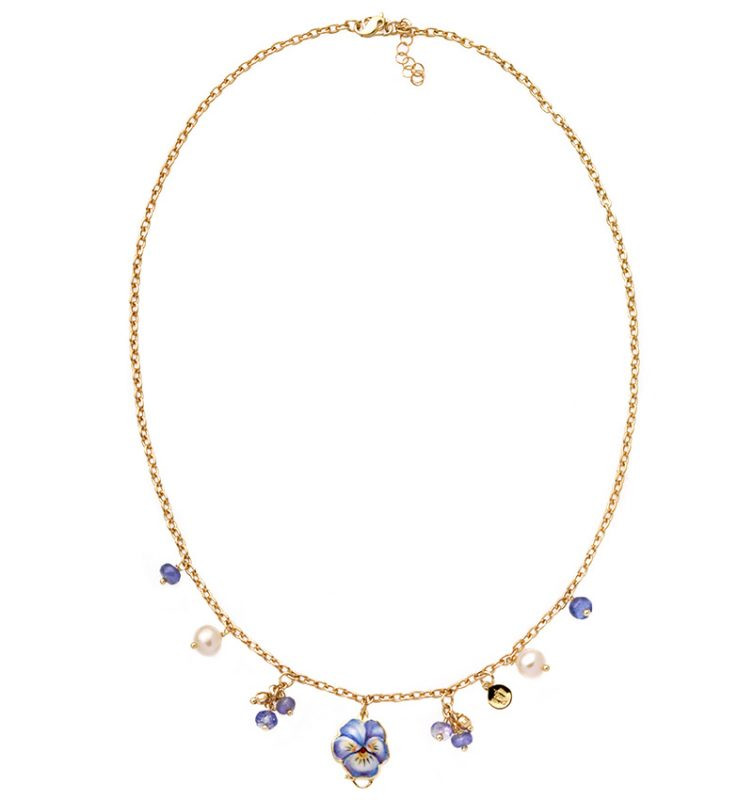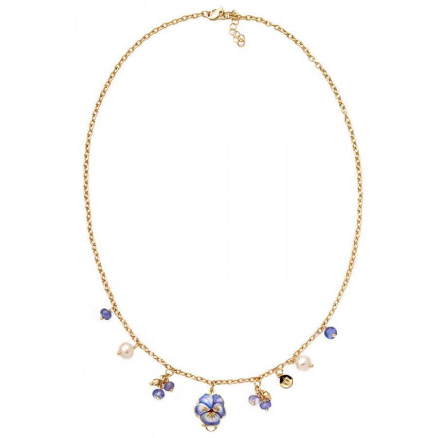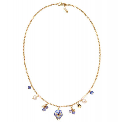 Collana Gabriella Rivalta in oro miniato Viole Fiorellini Grandi Azzurri, collezione Fiori