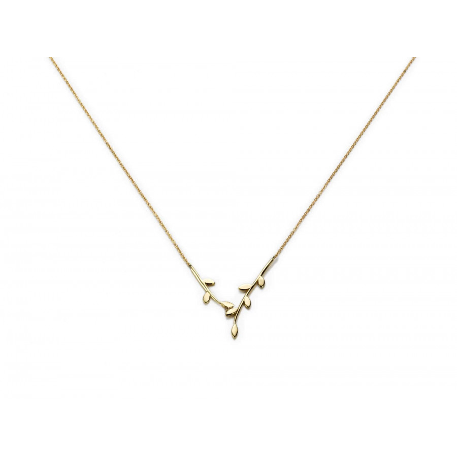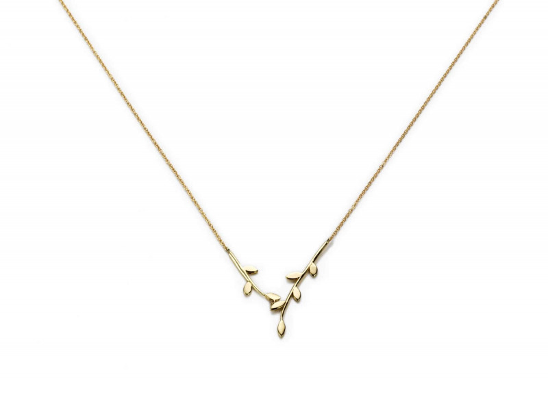 Collana Marco Gerbella in catena d'oro con due rametti e foglie a lastra, della collezione Flora.