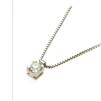 Collana in oro bianco caratterizzata da un diamante 0,19 ct con taglio brillante, colore G, purezza VS