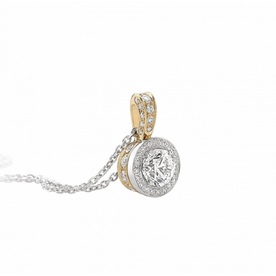 Giorgio Visconti girocollo solitario in oro bianco e rosa e diamante taglio brillante con contorno incassato a pavé.