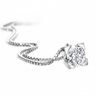 Giorgio Visconti girocollo solitario in oro bianco e diamante taglio brillante con inserito diamante laterale.