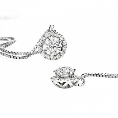 Girocollo solitario Giorgio Visconti Promessa in oro bianco con diamante centrale e contorno incassato a pavé