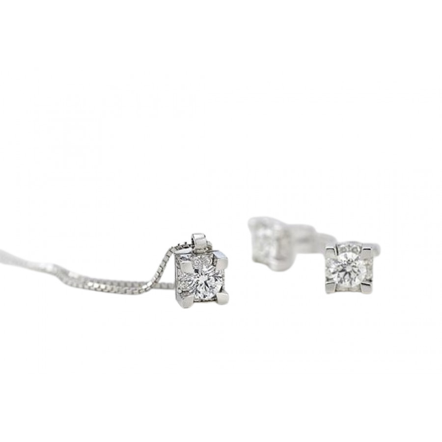 Giorgio Visconti Girocollo solitario in oro bianco con diamante centrale ct. 0,31 e contorno di diamanti taglio brillante ct. 0,05.