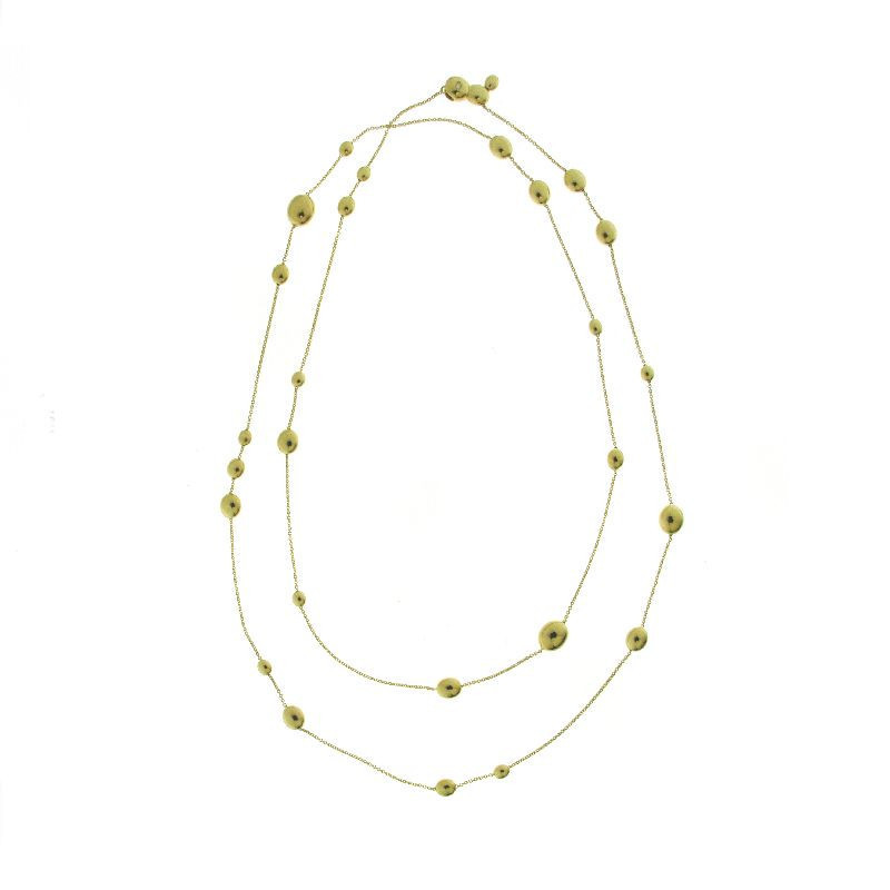 Questo gioiello prezioso dalle forme morbide e delicate, ha una finissima catena impreziosita dalla luce di un piccolo brillante e una chiusura a pinza. Il girocollo è regolabile e modulabile a piacere con indosso rotondo singolo, a doppio giro o a Y.