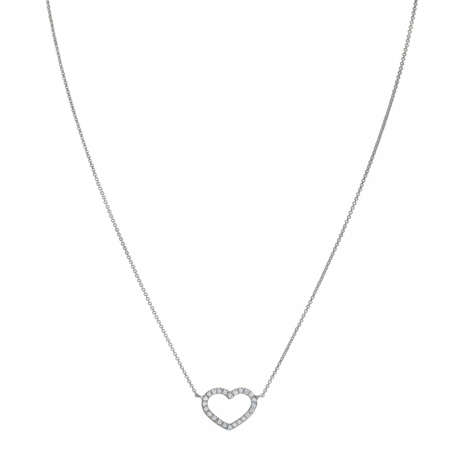 Collana cuore piccolo in oro bianco e diamanti 0.18 ct., 2.35 gr