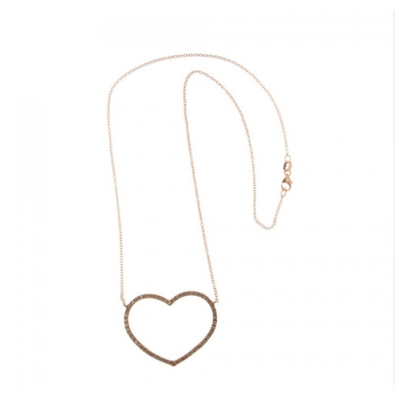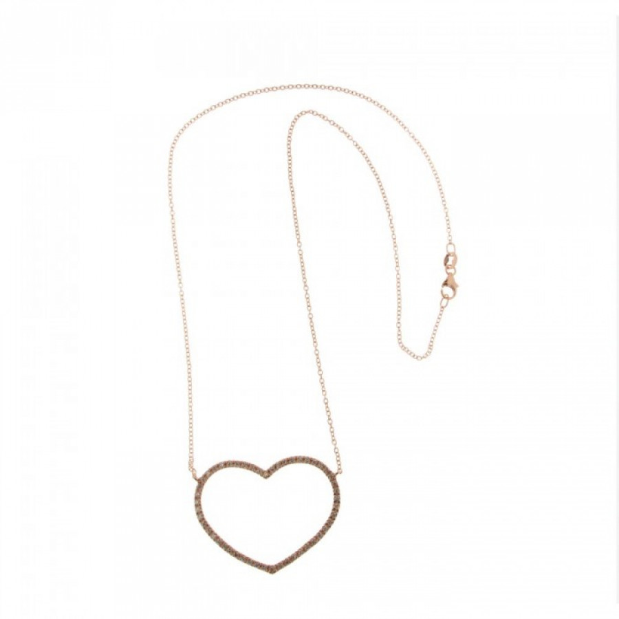 Collana in oro rosa 3.70 gr. con cuore a filo con dimanti 0.38 kt.