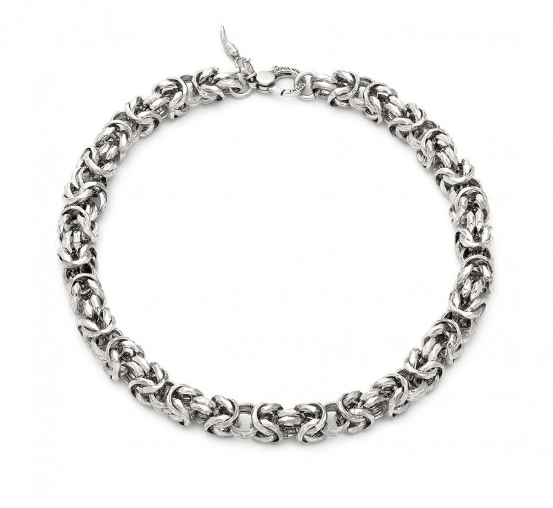 La collana Bizantina Luce Grande in argento firmata Giovanni Raspini reinterpreta con maestria l’iconica catena bizantina, esaltandone la luce e la matericità. Le maglie, finemente lavorate a mano, presentano una particolare sfaccettatura che cattura e riflette la luce con straordinaria intensità, donando al gioiello un'eleganza senza tempo.